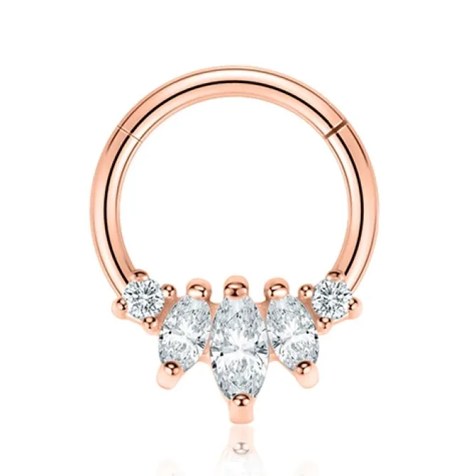 Kolczyk clicker różowe złoto z białymi cyrkoniami – K-038