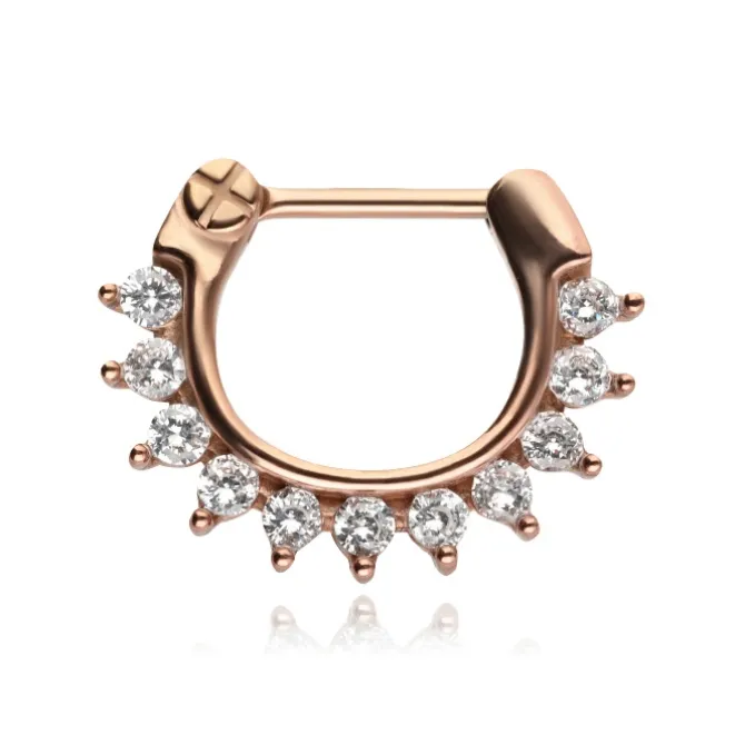 Kolczyk clicker z białymi cyrkoniami – różowe złoto – K-059