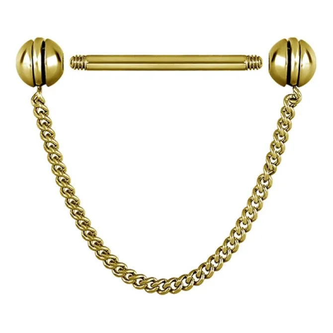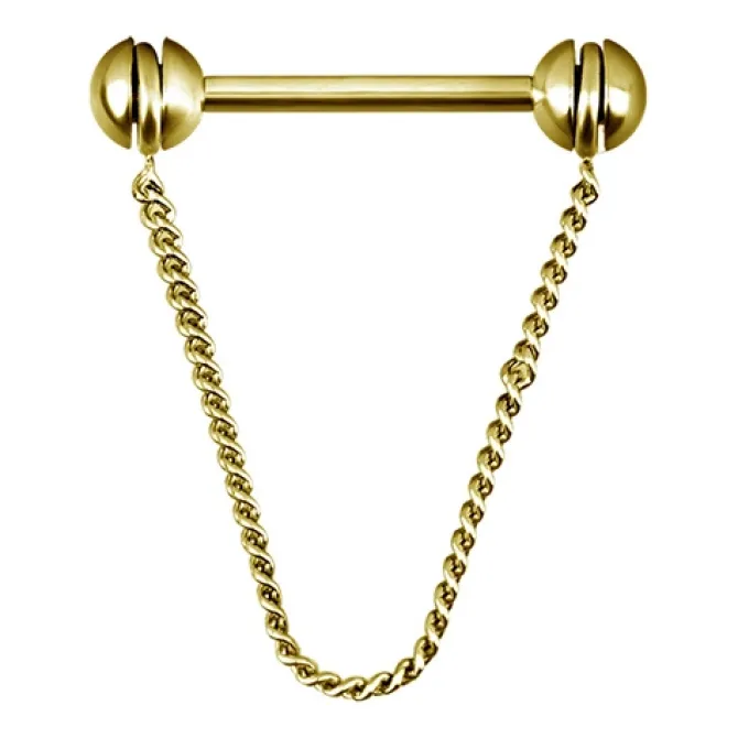 Kolczyk do sutka wykonany jest ze stali chirurgicznej 316L odpornej na działanie promieniowania UV i wilgoci. Kolczyk złoty swój kolor zawdzięcza trwałej i odpornej na odbarwienie powłoce PVD. Dzięki temu ozdoba przez długi czas wygląda estetycznie. Produkt ten spełni oczekiwania najbardziej wymagających miłośników piercingu. Jeśli szukasz ciekawych kolczyków w przystępnych cenach, zachęcamy do zakupów w Crazyneedles!