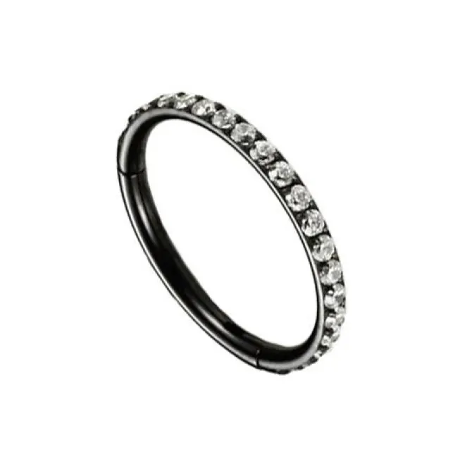 Elegancki, ale z pazurem – czarny kolczyk clicker z białymi cyrkoniami to propozycja dla tych, którzy lubią biżuterię przyciągającą spojrzenia. Połączenie głębokiej czerni ze świetlistymi cyrkoniami nadaje mu kontrastowego, wyrazistego wyglądu, który świetnie wpisuje się zarówno w minimalistyczne, jak i bardziej rockowe stylizacje.