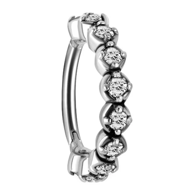 Mechanizm clicker to gwarancja wygody. Zakładasz jednym ruchem, bez szarpania i kombinowania. Pasuje do septuma, helixa, daitha czy concha – wszędzie tam, gdzie chcesz dodać trochę blasku bez przesady. Wykonany z wysokiej jakości stali chirurgicznej kolczyk nie tylko wygląda dobrze, ale też trzyma się pewnie przez cały dzień (i noc).