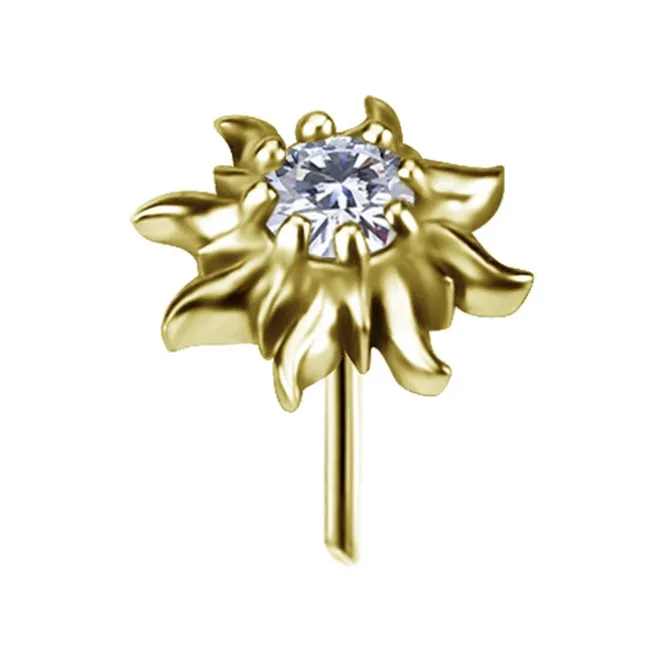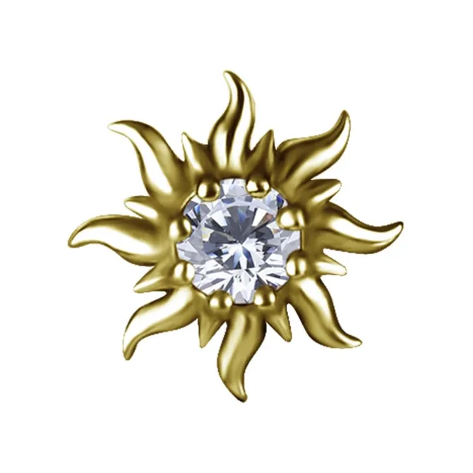 Nakrętka push in – słońce z białą cyrkonią – złota – PI-063