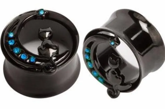 Tunel czarny siodłowy ozdobny z księżycem i kotem.