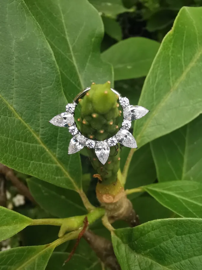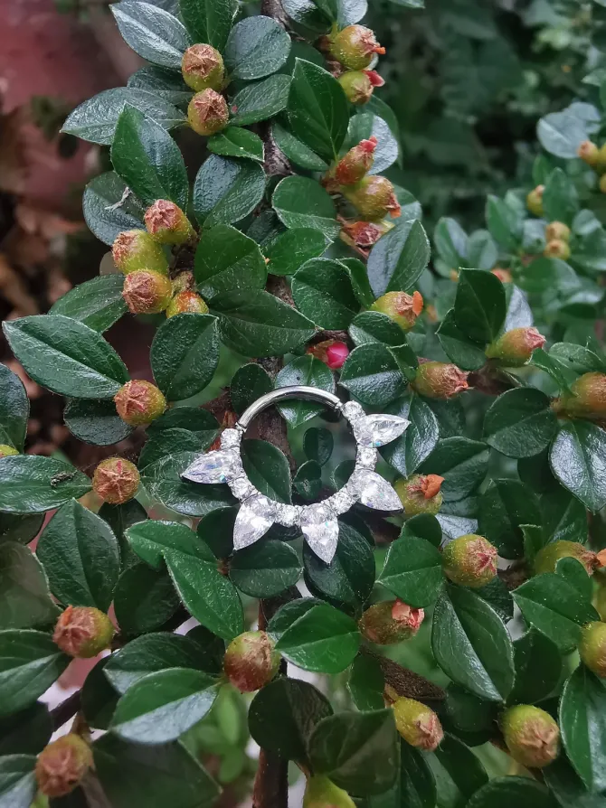 Kolczyk idealnie prezentuje się w piercingu typu helix, conch, wardze, itd.