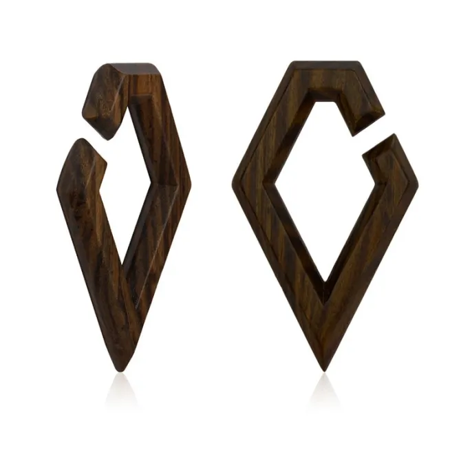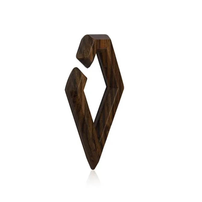 Ten kolczyk brązowy wyróżnia się ciekawym, modnym kształtem. Wykonany jest z drewna. Przeznaczony jest do noszenia w tunelach w uszach. Trafi w gust osób, które lubią bardzo oryginalną i przyciągającą uwagę biżuterię.