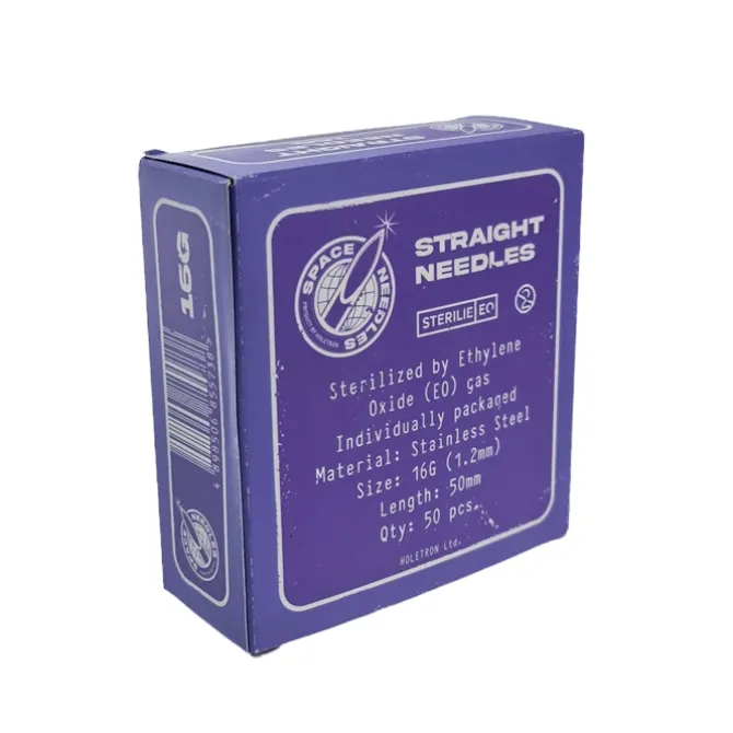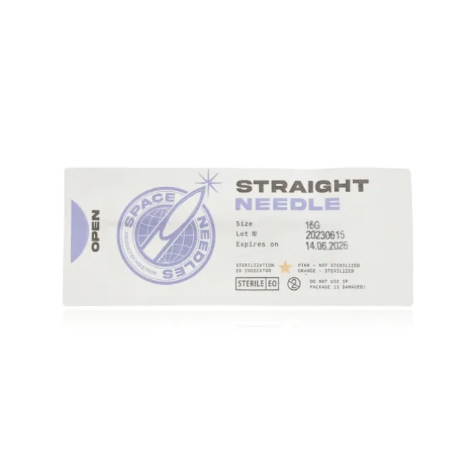 Każda igła jest osobno zapakowana w opakowaniu papierowo-foliowym.