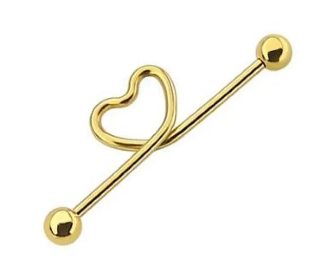 Złoty kolczyk Industrial z ozdobnym sercem