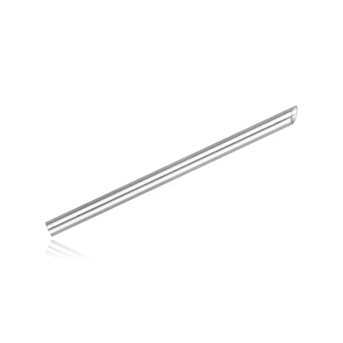 Jednorazowa rurka na jednym końcu jest zakrzywiona pod kątem 90 stopni, a z drugiej strony pod kątem 45 stopni.