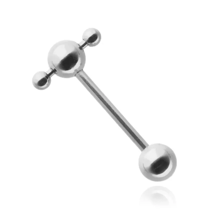 Wśród bogatej oferty naszego sklepu znajduje się unikalny kolczyk do języka – sztanga w sztandze. Sztanga w sztandze to design, w którym główny pręt (sztanga) jest przeznaczony do przekłucia i noszenia w ciele, a na jego końcach znajdują się dodatkowe, mniejsze pręty tworzące kolejną, nieco mniejszą sztangę – są zakończone kulkami.