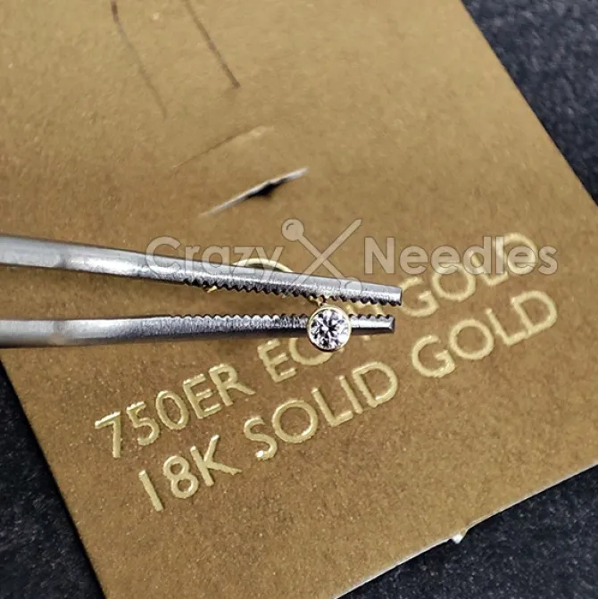 Każda cyrkonia w kolczyku jest laserowo oznaczona Zirconia (nie jest to widoczne „gołym okiem”, dopiero przy dobrym powiększeniu widać oznaczenie).