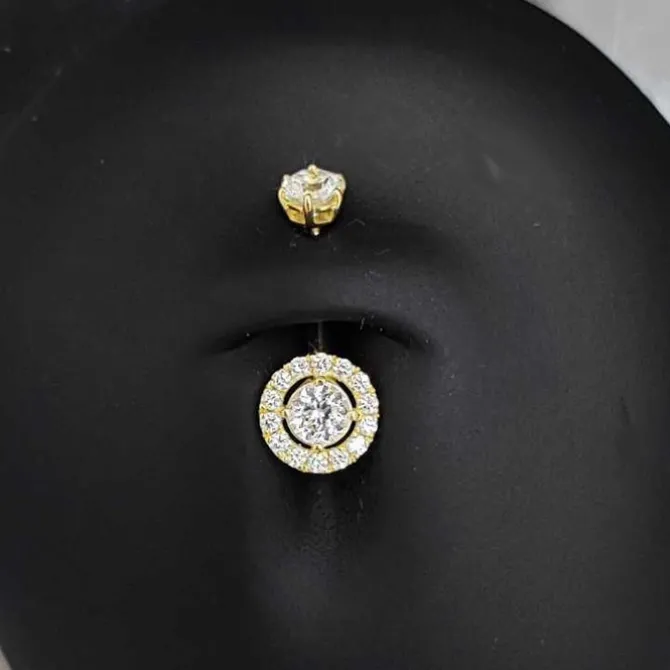 Kolczyk do pępka ze złota próby 750, odkręcana jest tylko górna ozdoba.