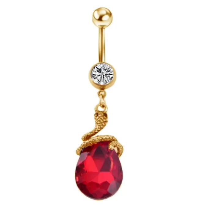 Kolczyk do pępka wąż z czerwonym kryształkiem