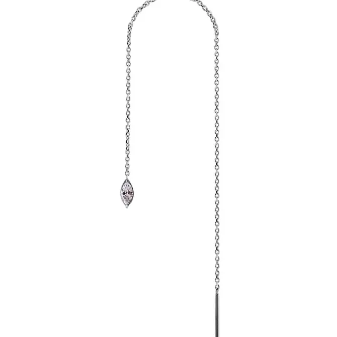 Kolczyk do ucha KU-055 wyróżnia długi, cienki łańcuszek w estetycznym, srebrnym kolorze. Na końcu znajduje się biała, wysokiej jakości cyrkonia. Dzięki kolczykowi srebrnemu zyskasz oryginalny look i skupisz na sobie uwagę otoczenia.