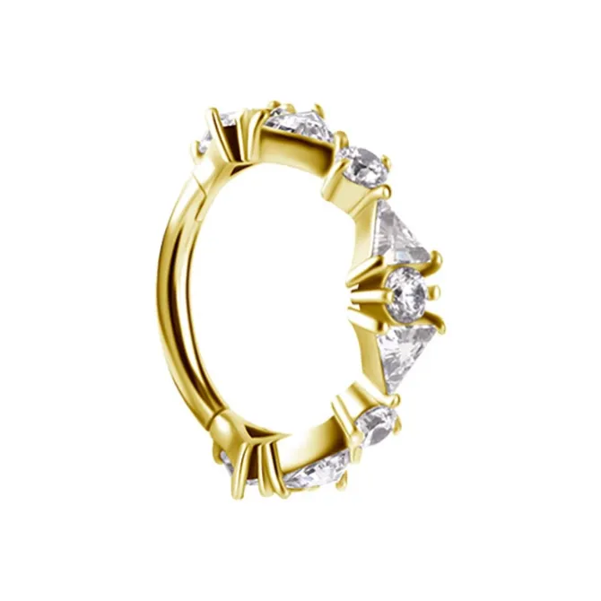 Kolczyk kółko clicker ozdobny z białymi cyrkoniami – CoCr NF – złoty – K-074