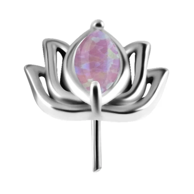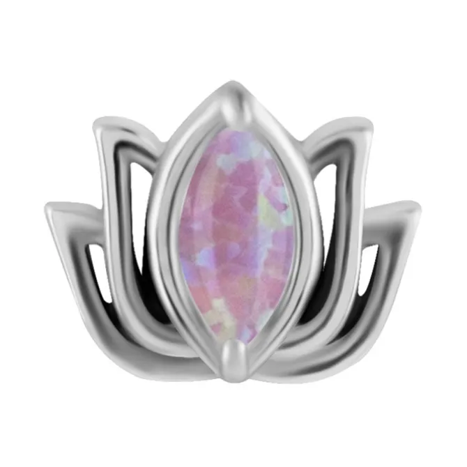 Nakrętka push in - kwiat lotosu z fioletowym opalem - CoCr NF - srebrna - PI-003