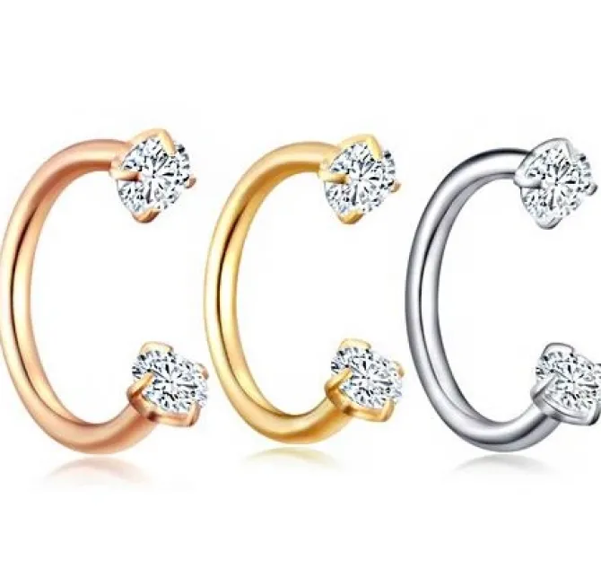 Podkowa z białymi cyrkoniami z gwintem wewnętrznym.