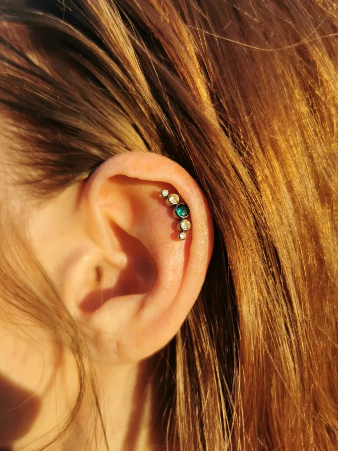 - Grubość gwintu: 0,9 mm (pasują do kolczyków tytanowych o grubości 1,2 mm)