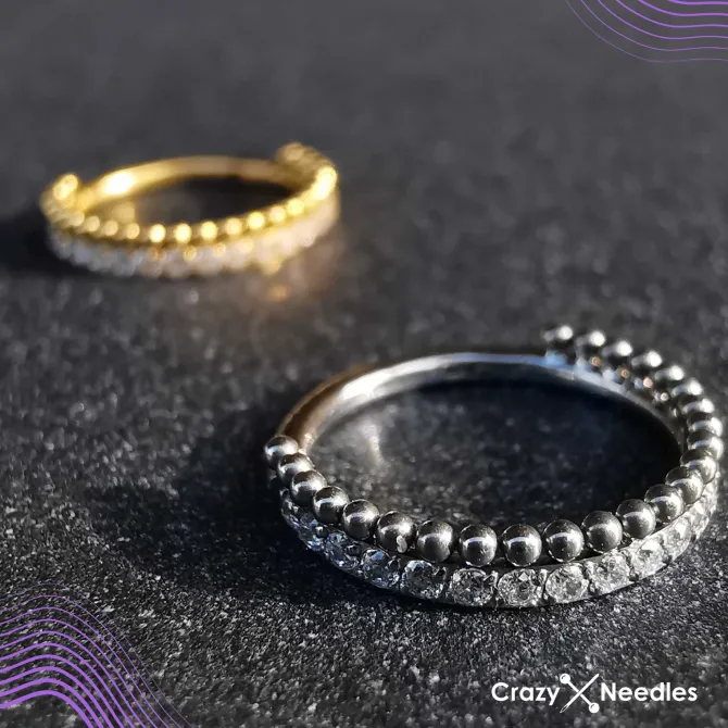 Kolczyk idealnie prezentuje się w piercingu typu lobe, helix, conch, itd.