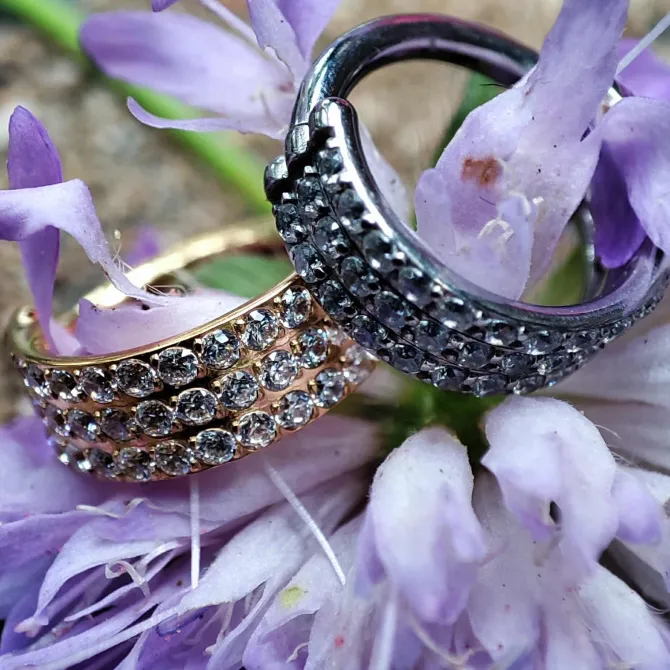 Kolczyk idealnie prezentuje się w piercingu typu lobe, helix, conch, itd.