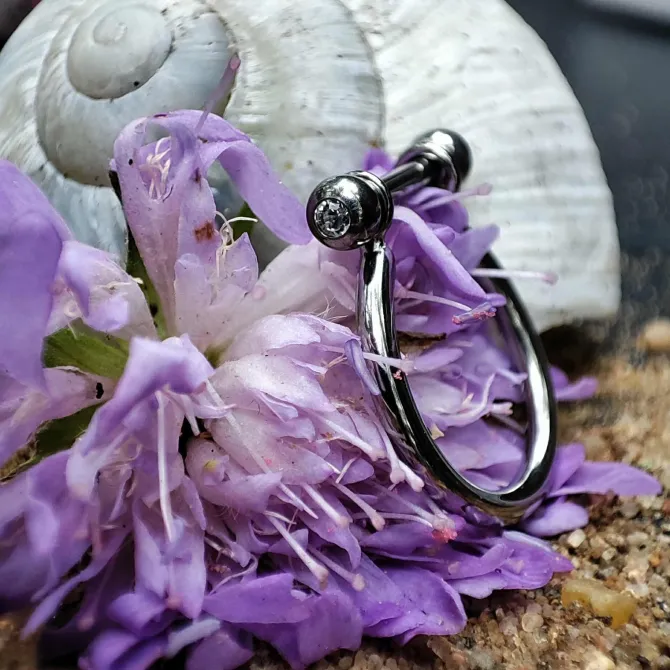 Kolczyk idealnie będzie wyglądał w przekłuciach typu conch, lobe itp.