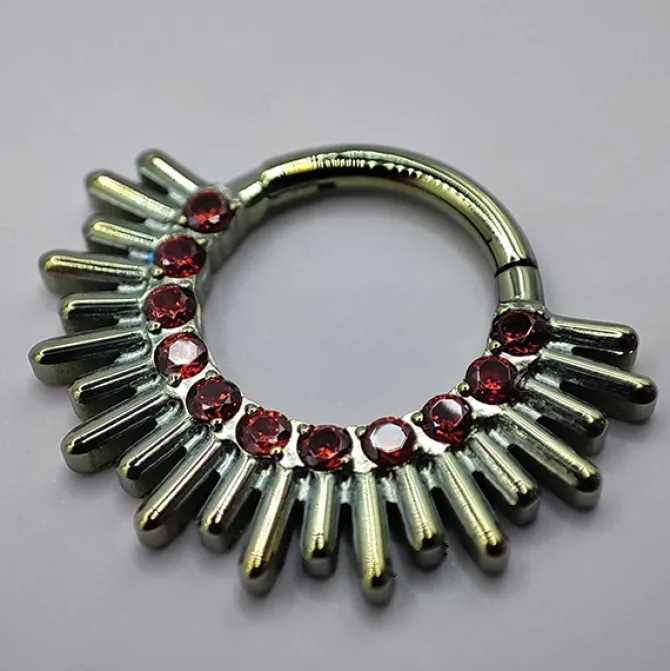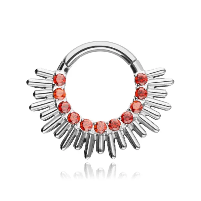 Size Be the first to review “Tytanowy kolczyk clicker z czerwonymi cyrkoniami – srebrny – TK-055”