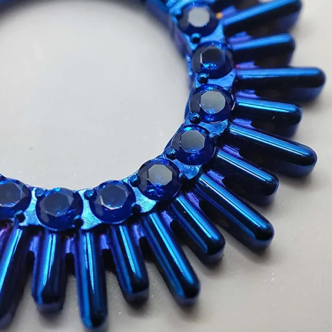 Przykładowe zdjęcie kolczyka anodyzowanego na kolor niebieski (jest to opcja dodatkowo płatna).