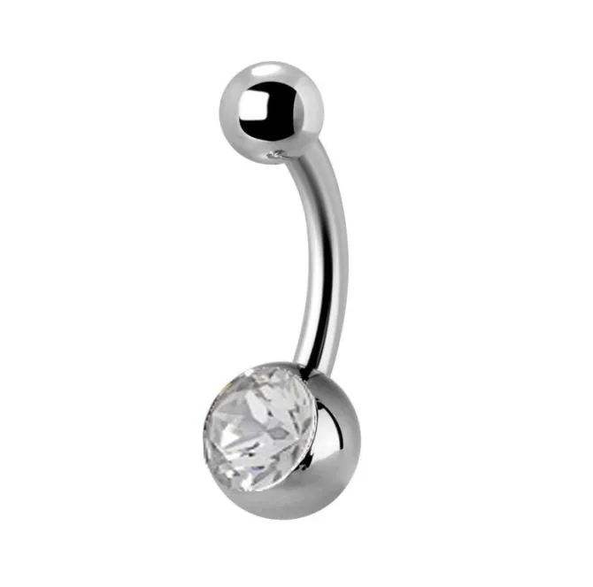 Kolczyk wykonano z tytanu ASTM F-136, który jest lekki, odporny na uszkodzenia i odpowiedni do długotrwałego noszenia. Dzięki temu biżuteria jest komfortowa, nawet w świeżym przekłuciu. Górna kulka jest odkręcana, co ułatwia zakładanie i stabilne mocowanie kolczyka w pępku.